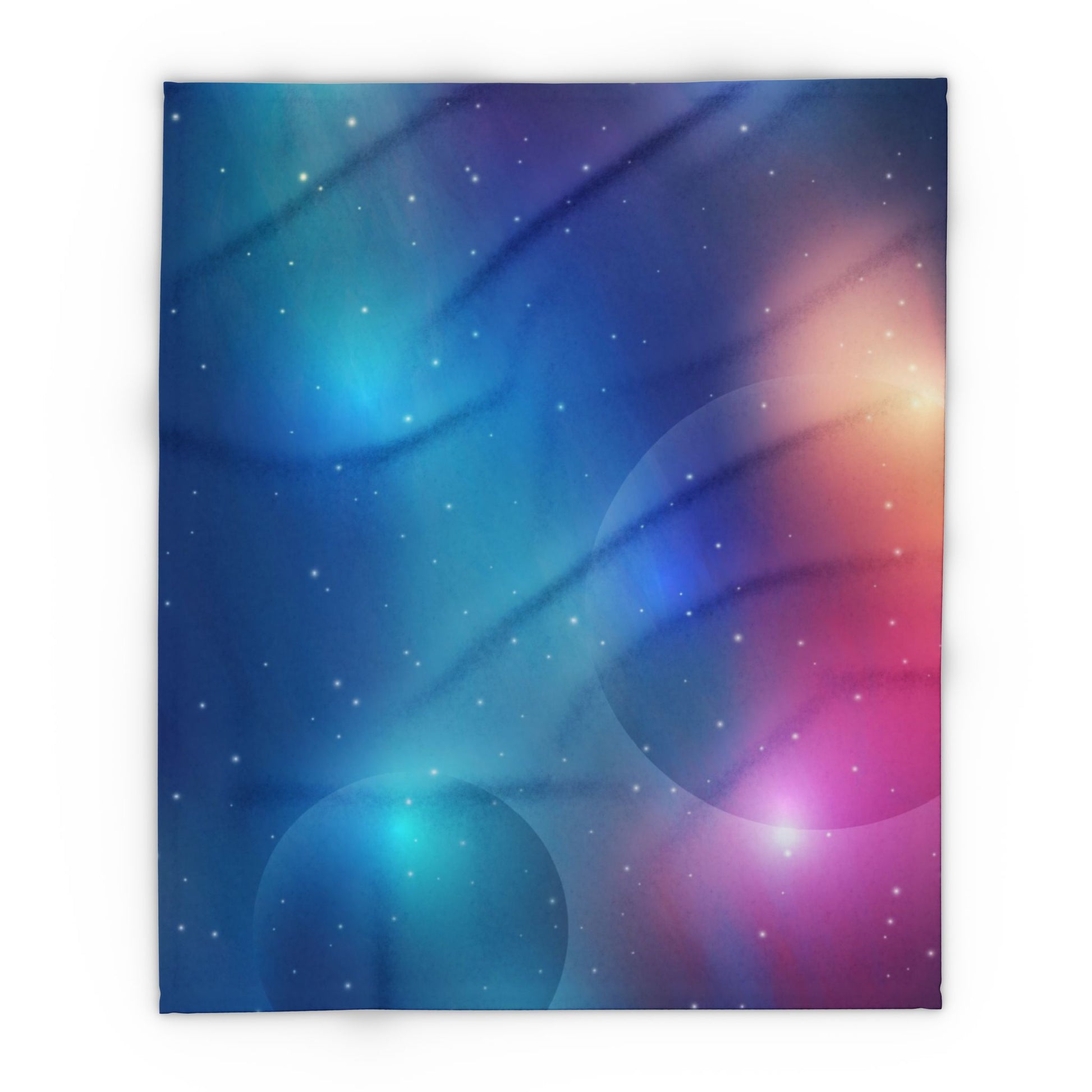 Curl up under a swath of cosmic color. This Arctic fleece blanket wraps you in thick, pillowy softness with a one-sided print that glows like the night sky — blues, teals and magentas blending into soft halos and distant star specks. It’s for quiet evenings on the couch, late-night stargazing from a chilly porch, or layering over a reading nook when the air turns crisp. The plush polyester holds its shape and color wash after wash, while hemmed edges keep the blanket feeling substantial and neat. Use it during winter movie nights, slow weekend mornings, or as an extra layer on a guest bed to add a touch of dreamy, celestial calm to your space.
