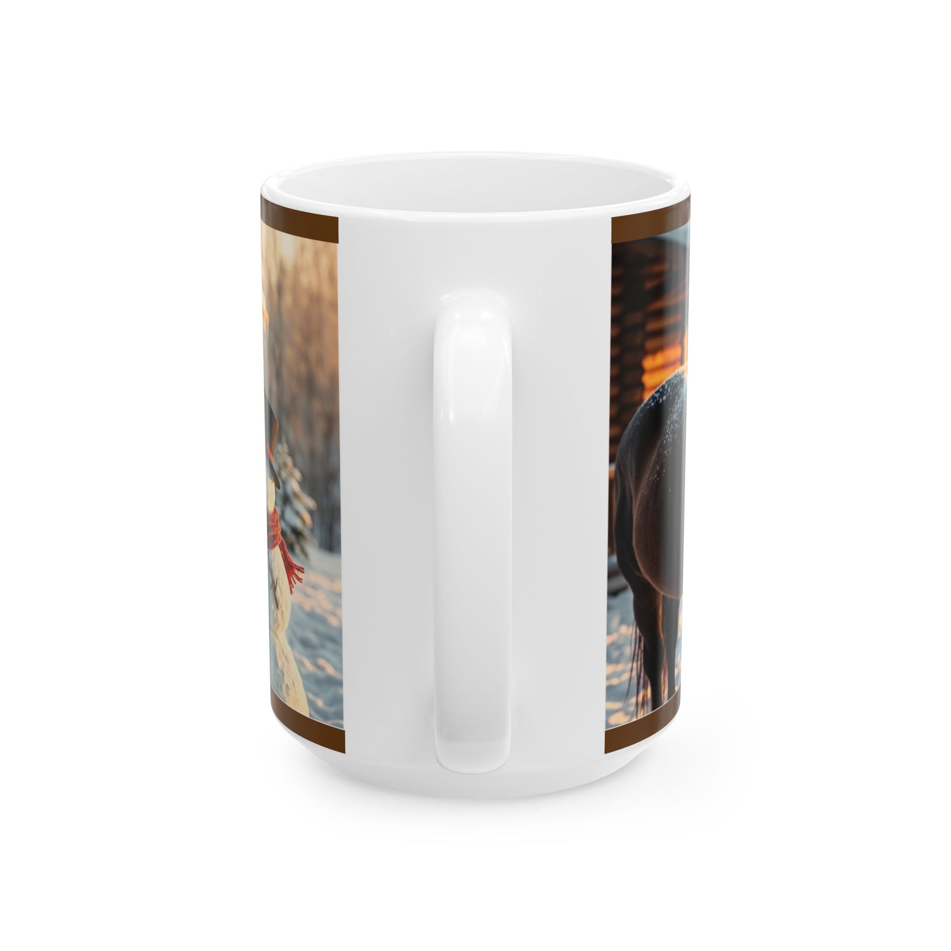 Christmas Horses & Snowman Ceramic Coffee Mug (11oz/15oz)