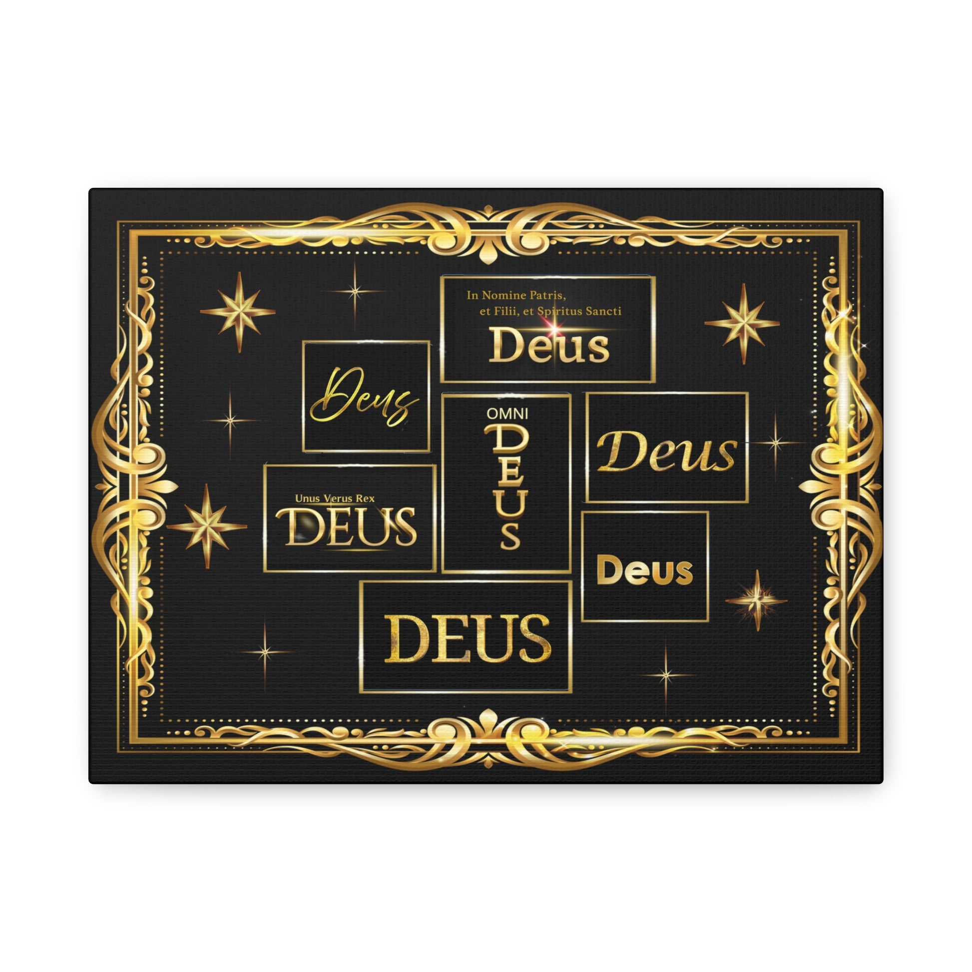 Deus Gold Script Matte Canvas Wall Art Black & Gold Religious Typography