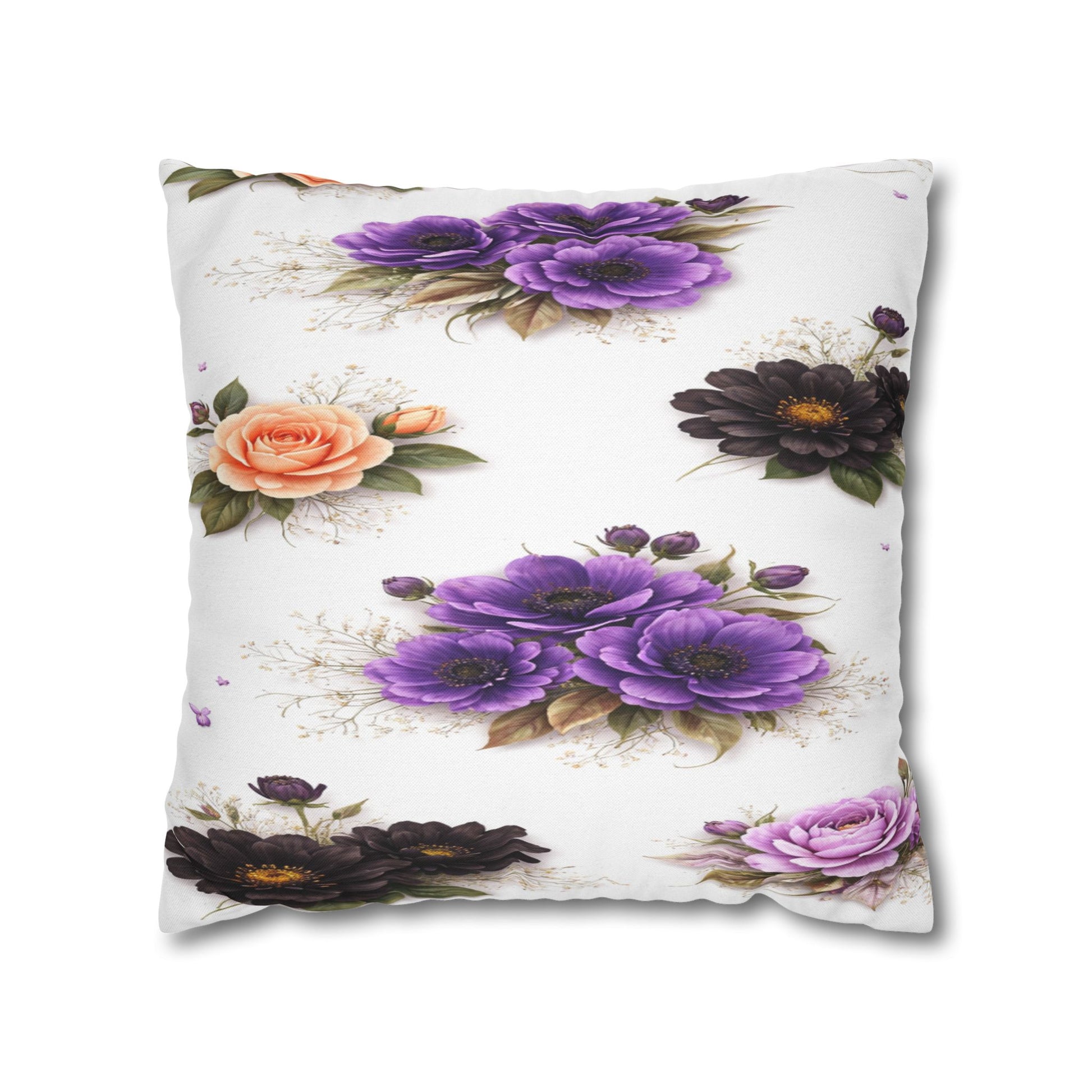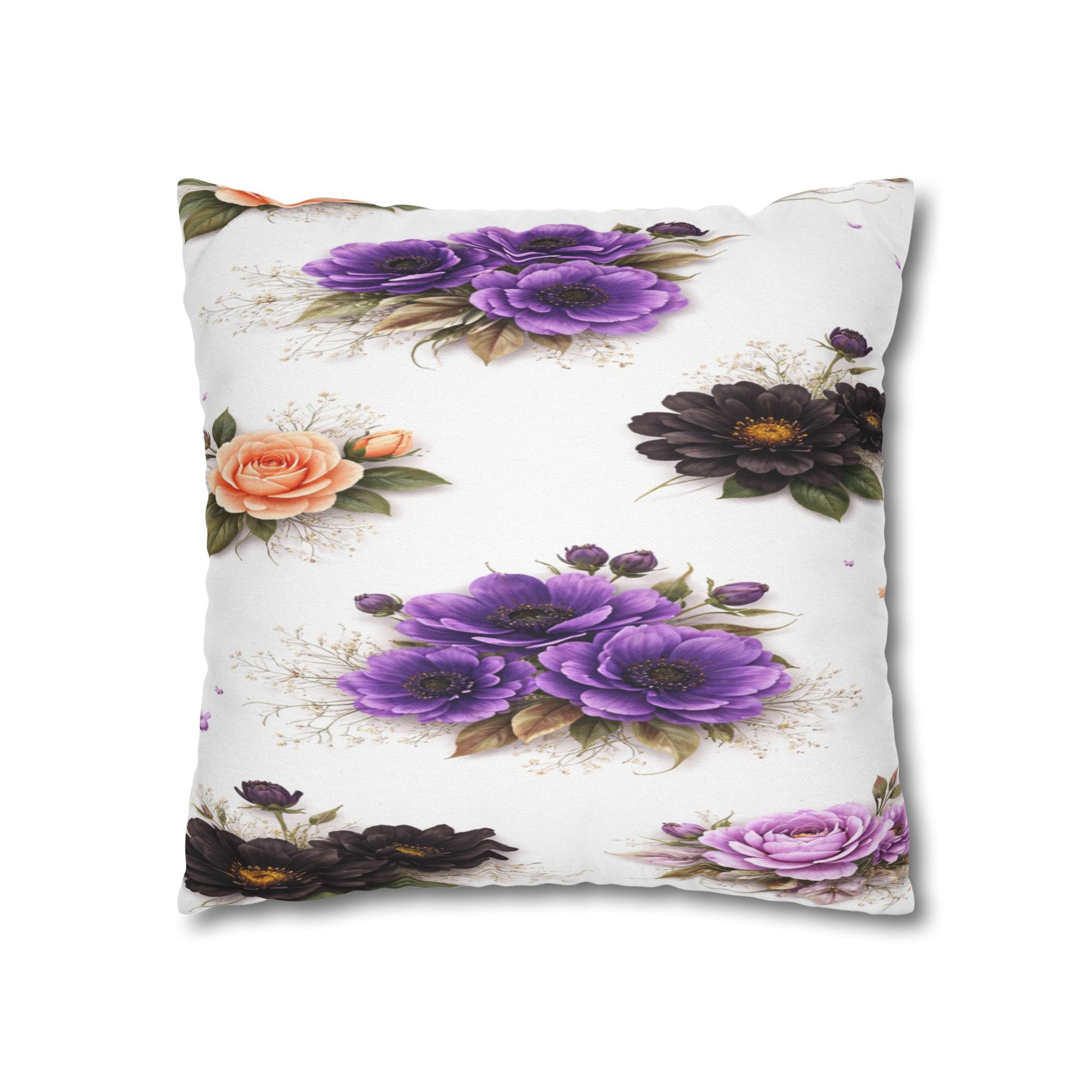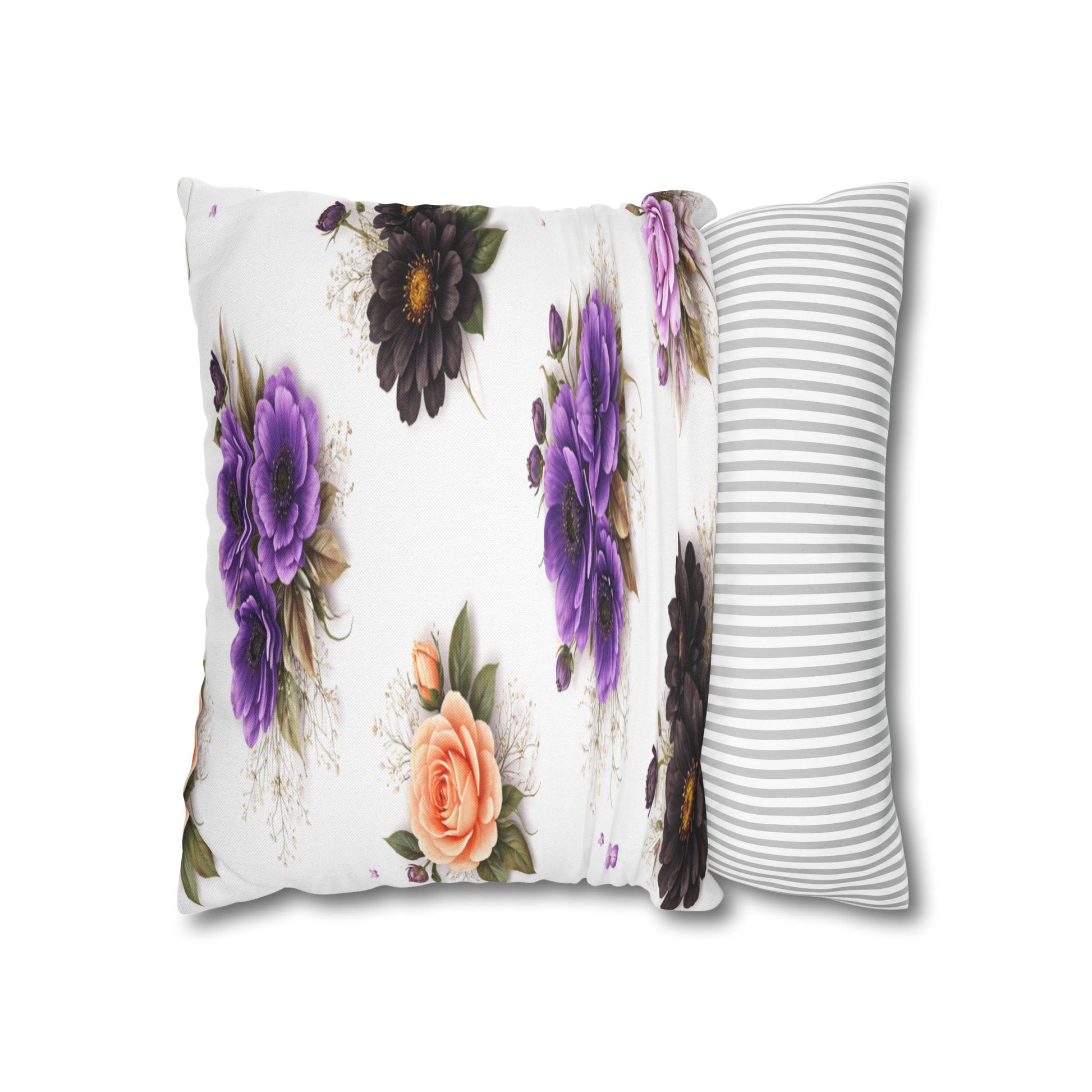 Floral Square Pillowcase – Purple & Peach Rose Print