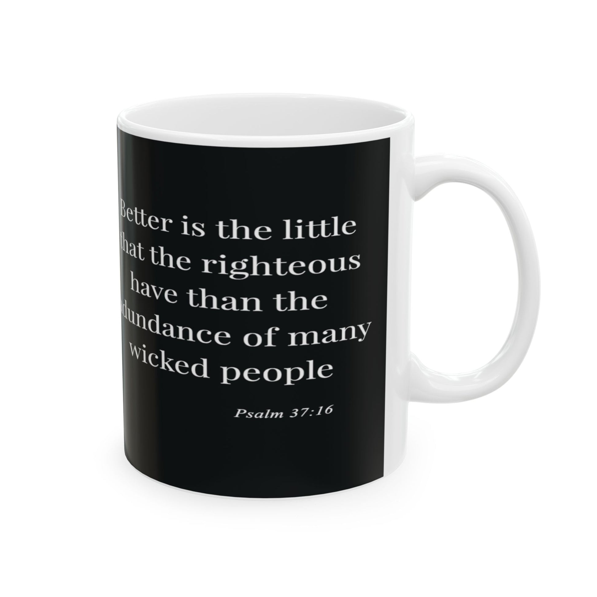 Scripture Quote & Serene Artwork ceramic hot beverage mug. A glossy ceramic mug that pairs quiet devotion with daily ritual. The artwork and gentle text sit against a deep black field, so each sip becomes a small, contemplative pause. It feels weighty in the hand, warm from the microwave, and bright with color when light catches the shiny finish. This mug belongs on the kitchen shelf of someone who treasures reflective moments morning coffee, a late-night tea, or a calm pause between tasks. The C-handle is comfortable for longer holds, and the two size choices let you choose a compact comfort or an extra-long pour. Durable, lead- and BPA-free, it stands up to everyday life while keeping the image crisp and luminous.