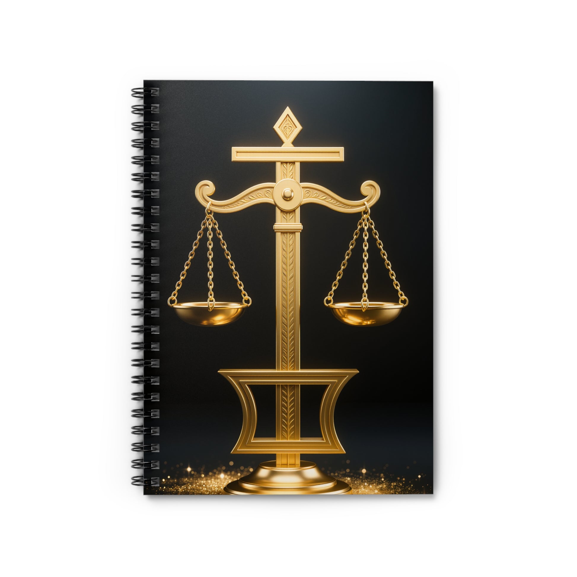 Libra Scales Spiral Notebook — Gold Justice Design, Ruled Journal for Lawyers & Astrology Fans