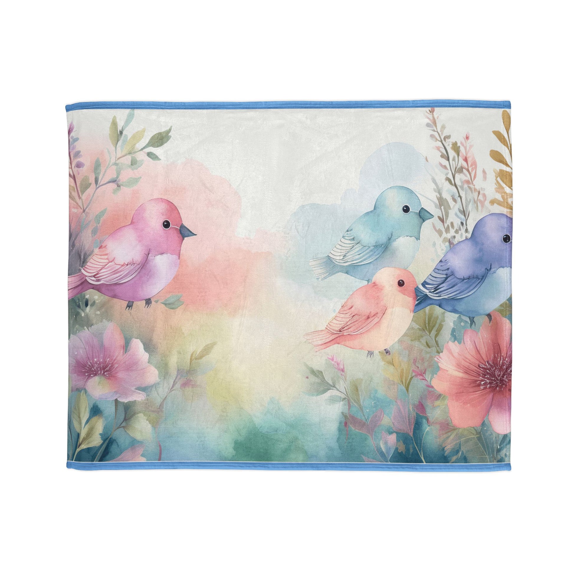 A soft, dreamy fleece blanket printed with watercolor birds and blooms. Lightweight yet plush, the 300gsm polyester holds bright, painterly colors that feel like a quiet morning in a sunlit garden. Drape it over a favorite chair, wrap around shoulders during an evening read, or layer it on a bed for a touch of whimsical color. The hemmed edges and matched seam thread give a neat, finished look that keeps this blanket looking gentle and well-made through repeated use and washes. Soft Polyester Throw for Nursery & Gifts.